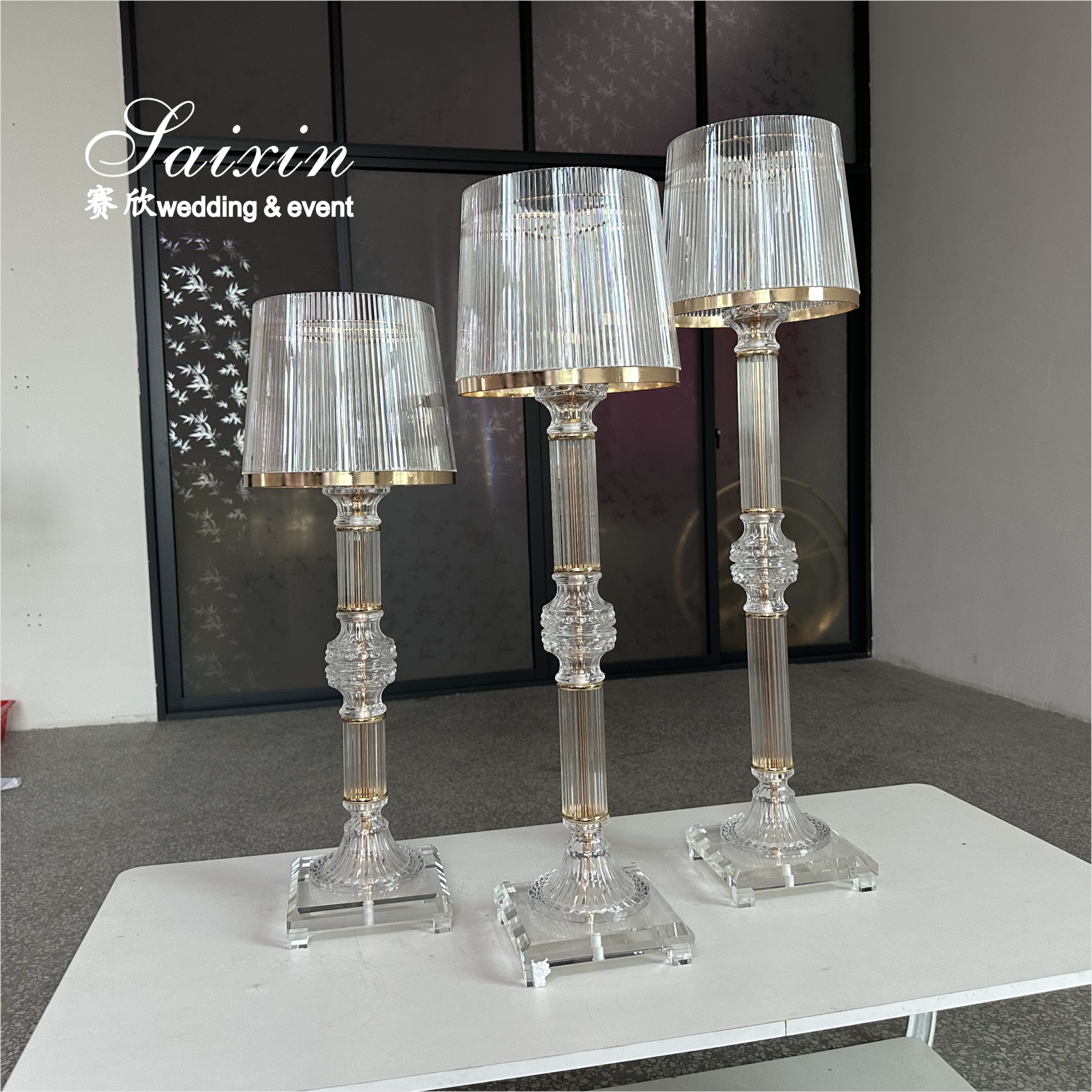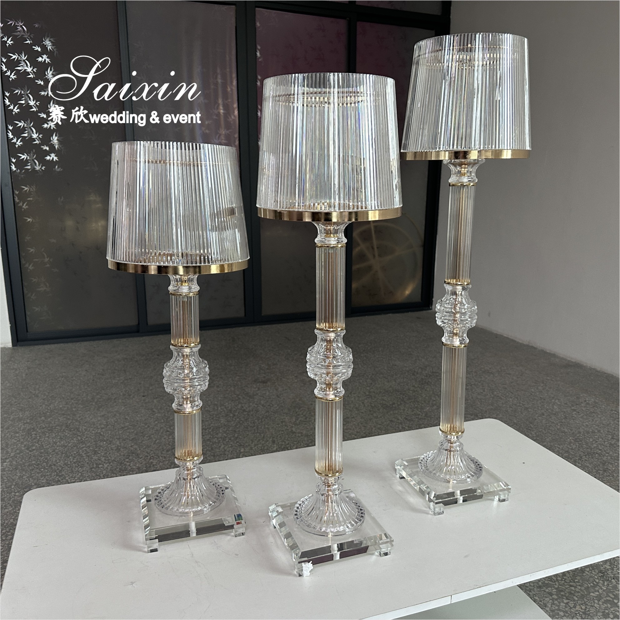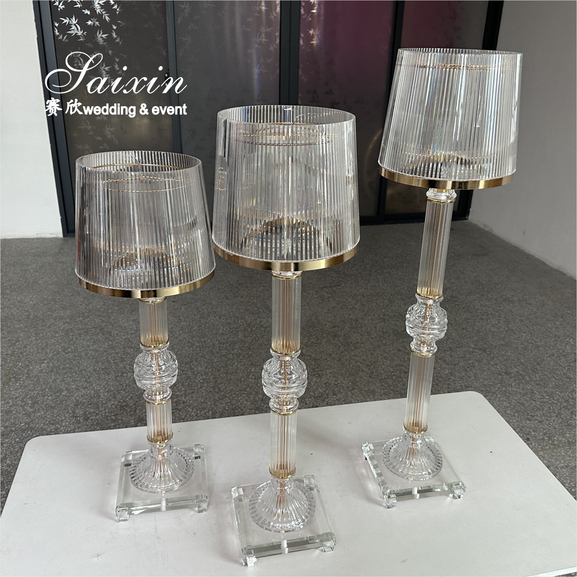 | Resaltar: | gold crystal candle holders,clear glass wedding centerpiece stands,3 piece ring shade candle holders |